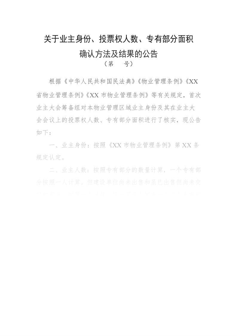 关于业主身份、投票权人数、专有部分面积确认方法及结果的公告