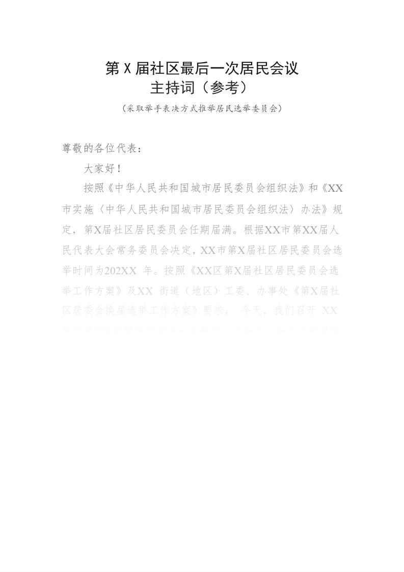 第X届社区最后一次居民会议主持词(举手表决)