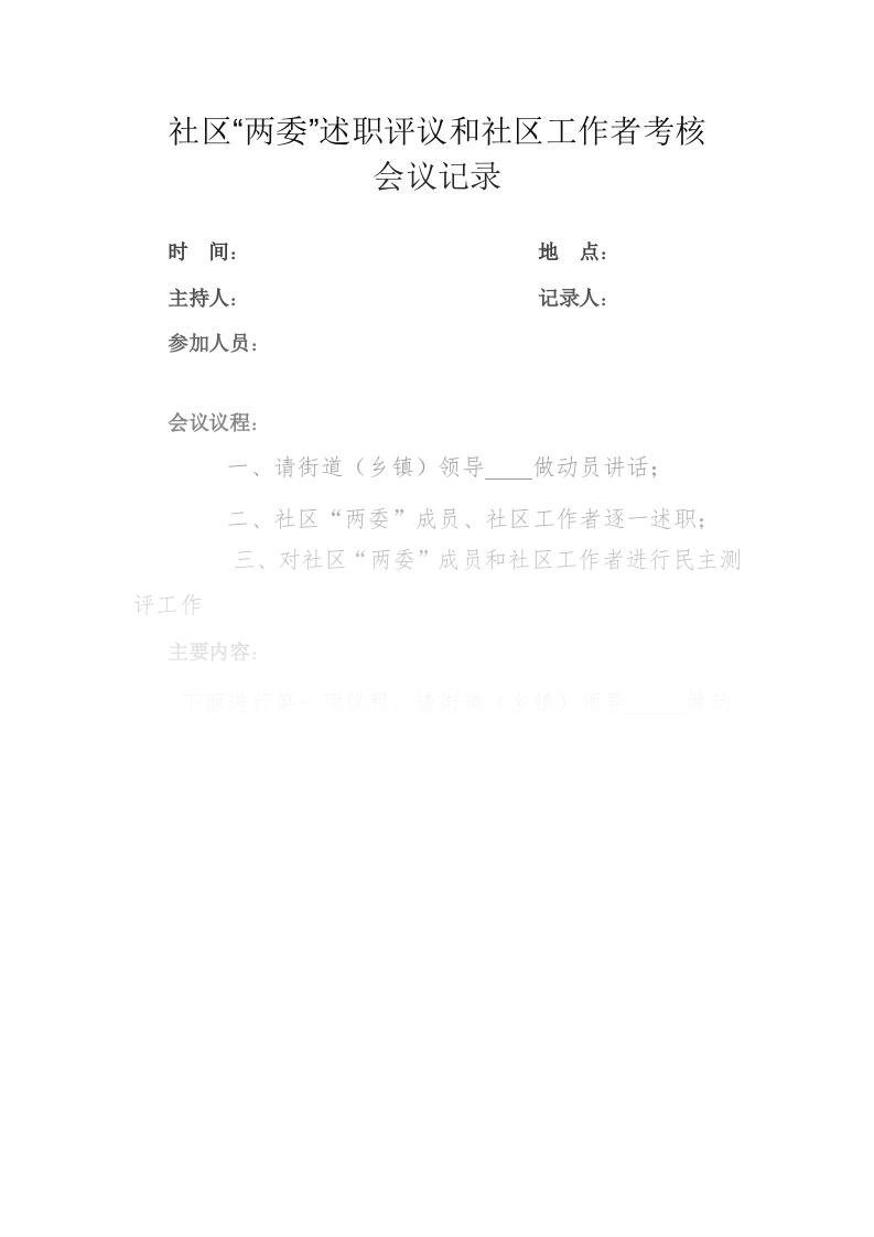 社区两委述职评议和社区工作者考核会议记录