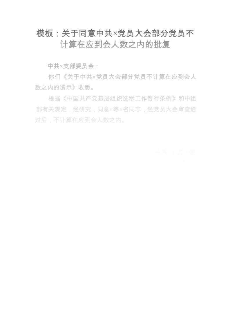 模板:关于同意中共×党员大会部分党员不计算在应到会人数之内的批复